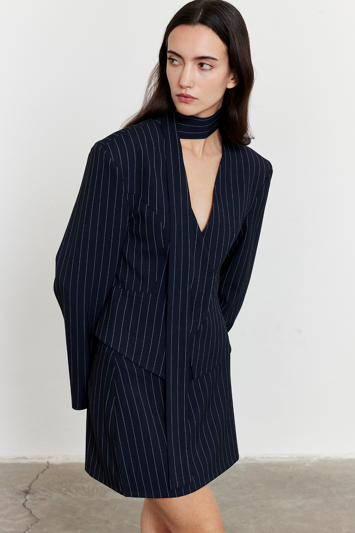 Çizgili Mini Etek Lacivert