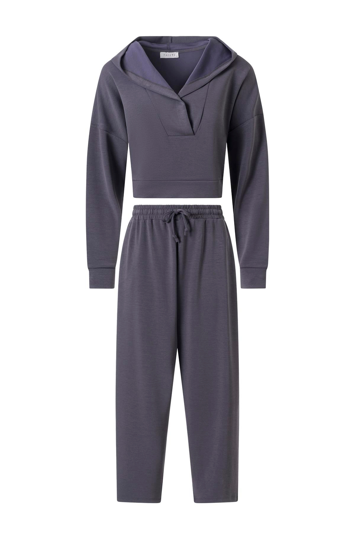 Gri Önü Pervazlı Kapüşonlu Takım alt-üst Takım, soft touch, tam kalıp, bol paça, beli lastikli, kapüşonlu Kumaş Türü: %95 Viskon %5 Elasthan