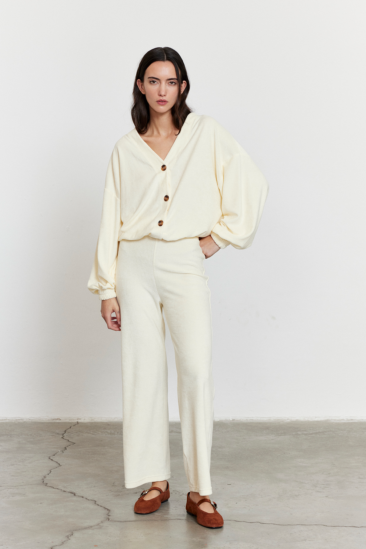 Ürün Bilgisi: beli lastikli, yüksek bel, hafif geniş paça