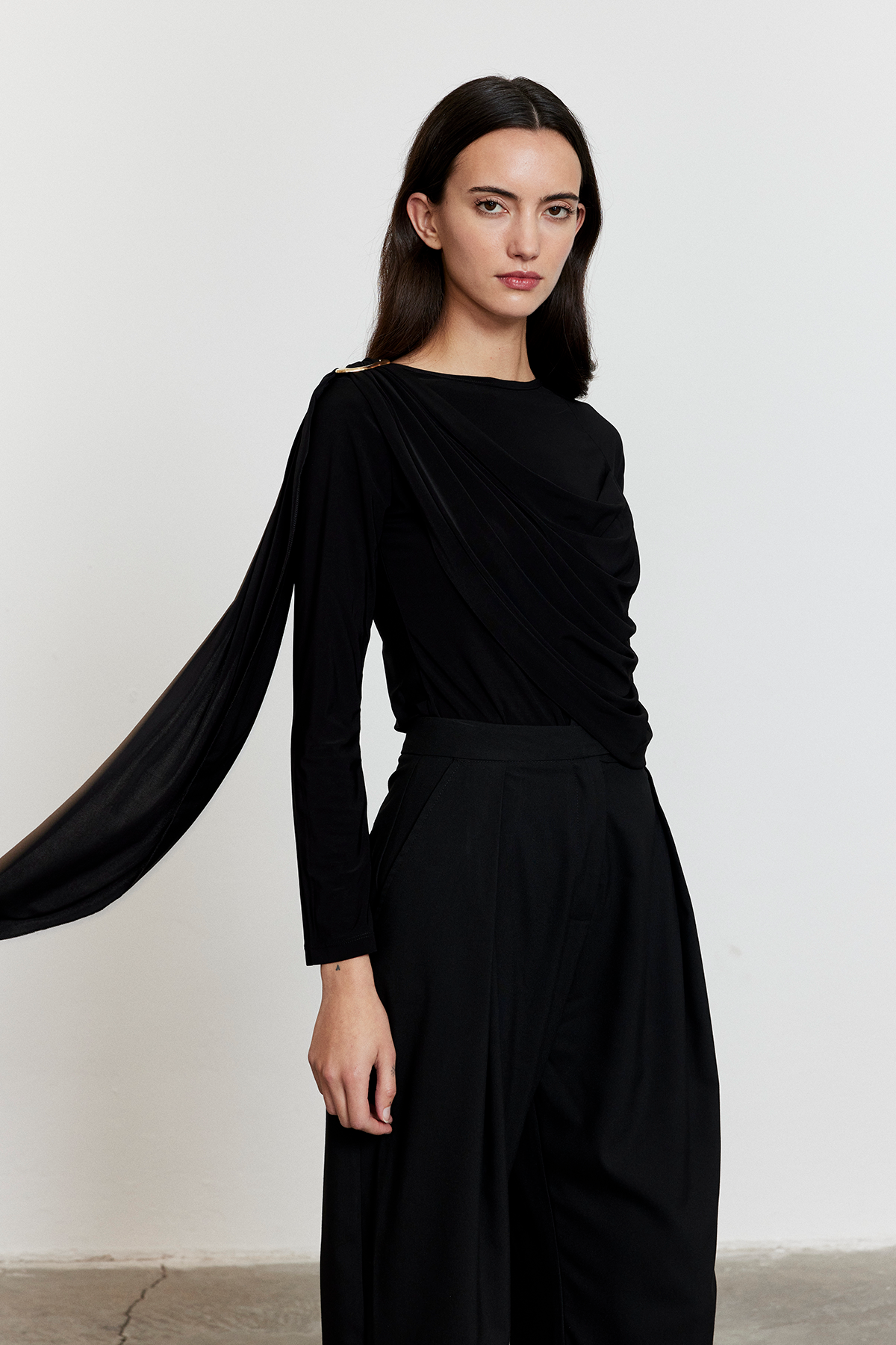 Şal Detaylı Bluz Siyah (FCFW0100003)